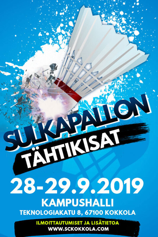 Tähtikisat järjestetään toistamiseen Kampushallilla, jonne toivotaan saapuvan pelaajia myös Suomen kovimmasta kärjestä. Kisoissa pelataan myös harrastesarjat, joihin et tarvitse lisenssiä ja joihin voit osallistua täysin höntsämeiningilläkin. Ilmoittautumiset harrastesarjoihn sähköpostilla sulkapallo@sckokkola.com Nyt päivämäärä kalenteriin, ja ilmoittautumaan. Lisätietoa lähempänä kisoja.